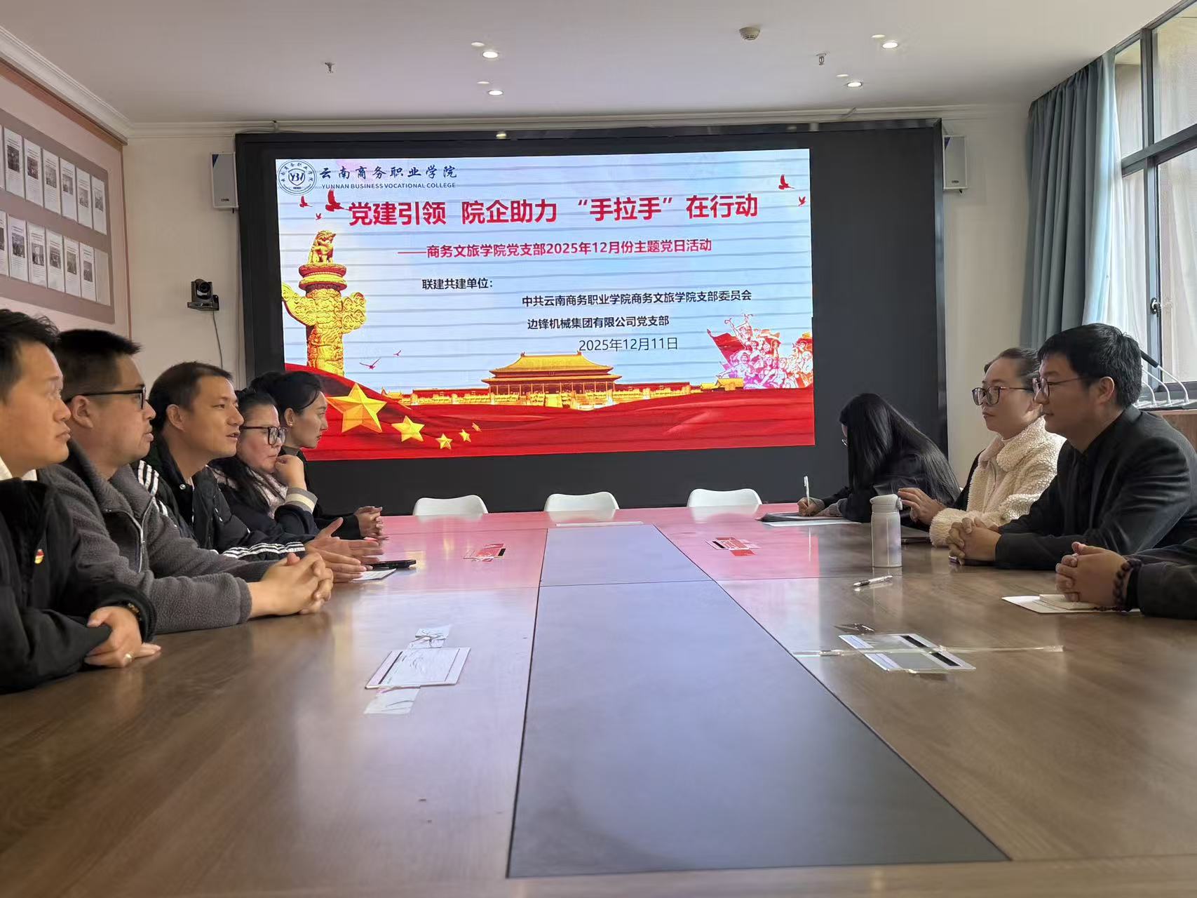 为积极探索基层党建工作新形式,深化校企合作内涵,推动党建与业务发展同频共振,12月11日,云南商务职业学院商务文旅学院党支部与嘉善边锋机械(集团)有限公司党组织共同组织开展“党建手拉手”联合主题党日活动。活动以共建共享、互学互促为主线,为双方进一步合作奠定了坚实的组织与思想基础。
