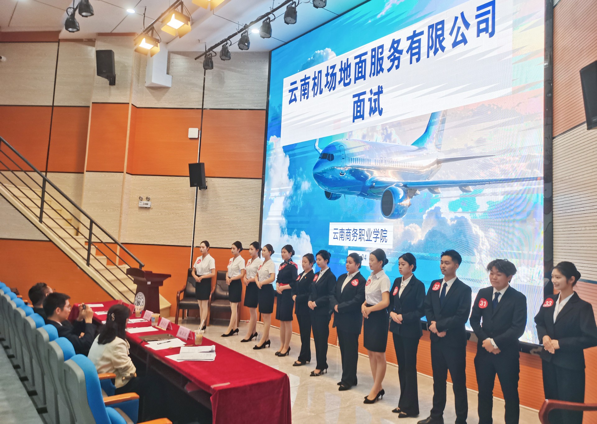 面试环节,氛围庄重而有序。学子们身着笔挺的专业制服,以昂扬的精神风貌依次登场。企业面试官围绕形象气质、专业知识、沟通表达、应急处置等多维度进行全面综合考核。学子们沉着应答、从容展现,扎实的专业素养、良好的服务意识和得体的言行举止,给面试官留下了深刻印象。
